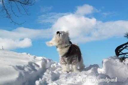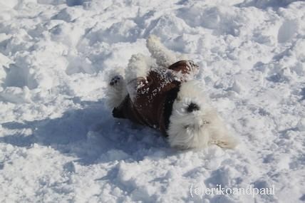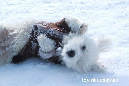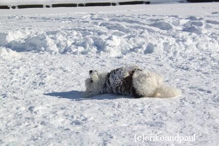 雪の上でくねくね、ころころ転がるバブー、かわいいーーーっ♪