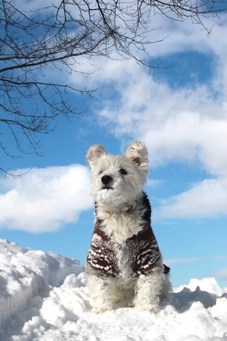 青空に浮かぶ白い雲、真っ白な雪、白熊みたいなバブー。