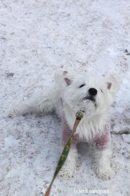 最初は80度くらいだった足の開きが、私にリードを引っ張られて、見事90度。