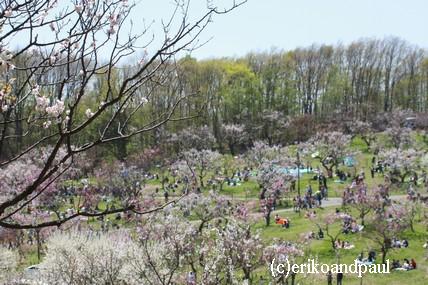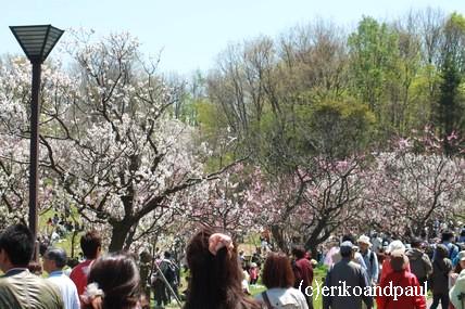 梅の花が満開だと聞いて、天気が良かったら行きたいな~、と思っていたのが運よく実現したのは良かったのだけれど、想像以上に広い公園で、久々の好天とあって人出も想像以上。