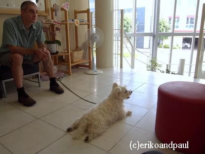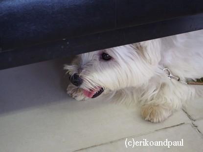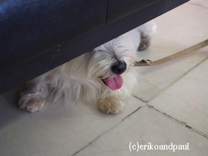 ・・・のはずなんだけど、だんだん診察時間が近づいてきたのが分かったのか、ソファーの下に隠れちゃったバブー。