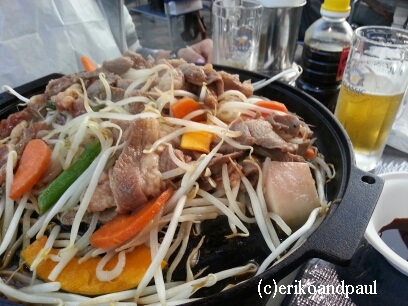 この日は、テレビ塔の下のビアガーデンで、ジンギスカン。