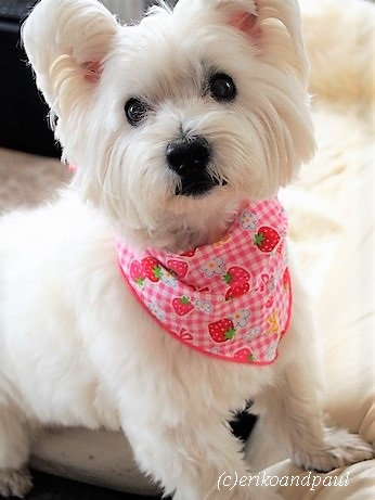 赤ちゃんの頃から、11年間変わらずお世話になっているトリマーさんのおかげで、白く輝くウェスティのこの美しさをキープ。