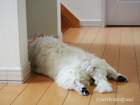 階段のところでぺったんこ。