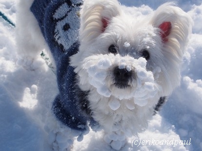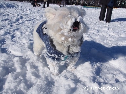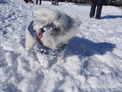 雪がたくさん降ったので、今日もバブーは雪の中を走りました。
