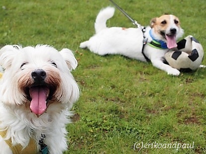今朝は元気いっぱいのジャックラッセルテリアのグリちゃんに会いました。