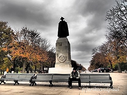 グリニッジ展望台にあるウルフ将軍像とベンチで休憩するポール