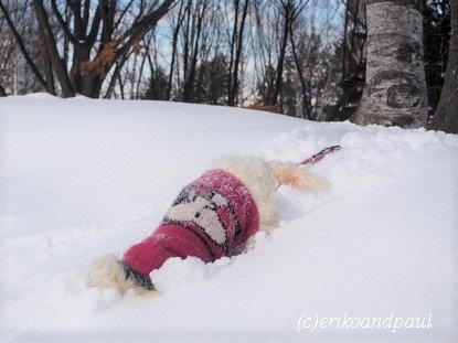 とはいえ、3割くらいは雪の中にドリルのように頭から突っ込んでクールダウンしているけれど、基本的には楽しそうによく走ってる。