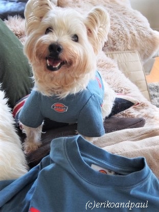 ママとお揃いなんだ~♪これ着てお散歩行くんだ~♪て、感じの幸せの笑顔(o⌒∇⌒o)ヨカッタ