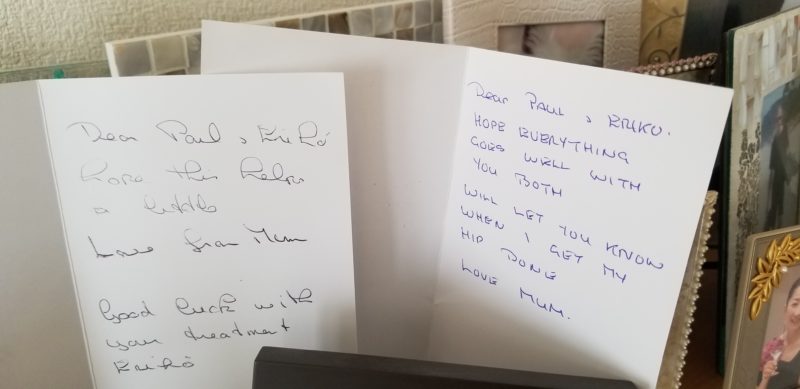先日、義母から電話が来たときにポールが、「カードを贈るときは、活字風の文字で書いた方がいいよ」と伝えていました(笑)。