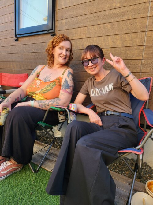快晴で太陽はギラギラ照り付けていたけれど、日陰に入るとそよ風がそよそよと、お肉もビールも美味しくて暑い夏を満喫。