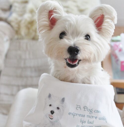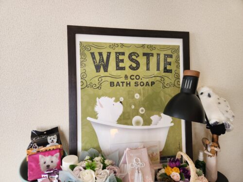 ウェスティの、ぽてっとした体形で、ふんわり、のほほんとした性格がよく表されていて、見ているだけでとにかく癒されるんです。