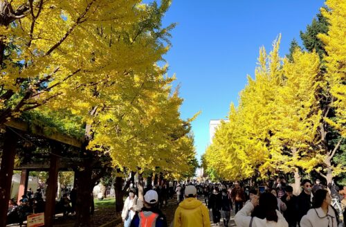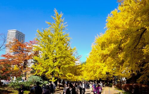 真っ青な空に鮮やかな黄色やオレンジがとてもよく映えて、その美しさ、見事な紅葉に久しぶりに何枚も写真を撮りました。