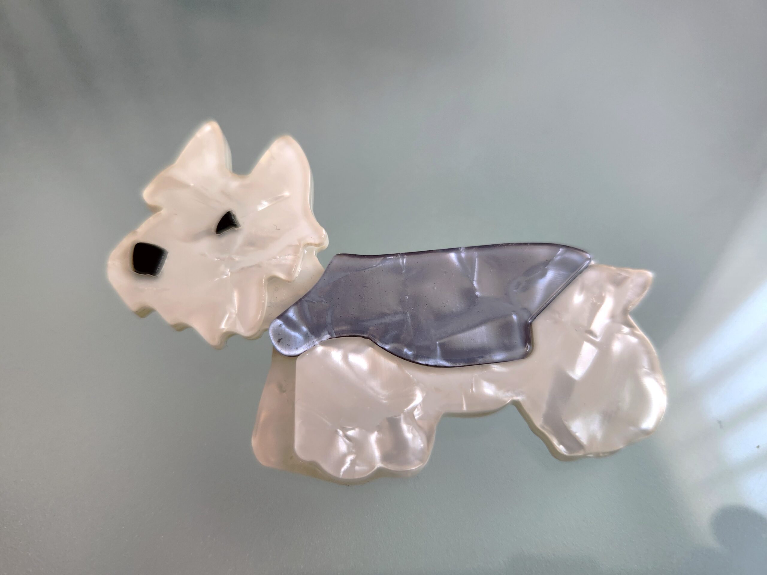 AIによると……この画像は、ウェスト・ハイランド・ホワイト・テリア(ウェスティ)をモチーフにしたブローチです。