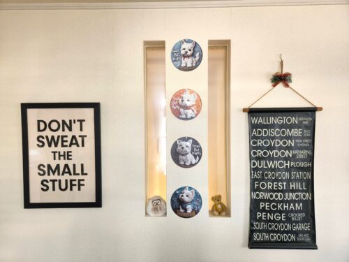ダイニングの壁に飾って、こんな感じになりました↓。