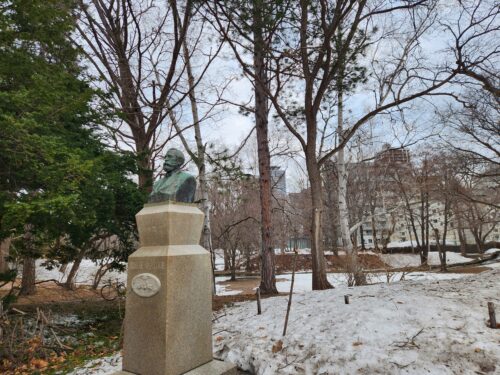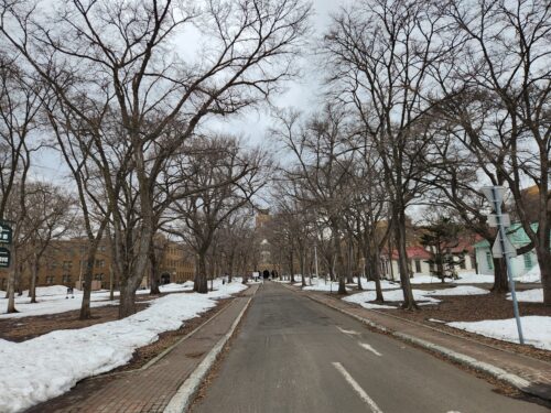 ※本日の写真は、先週、北大病院にお見舞いに行った時に北大構内で撮ったものです。まだ雪が残っていて寒々しい・・・。